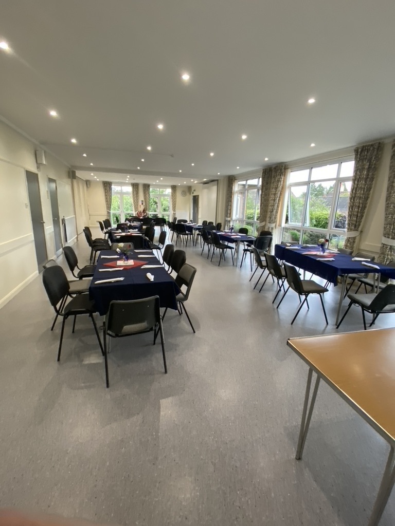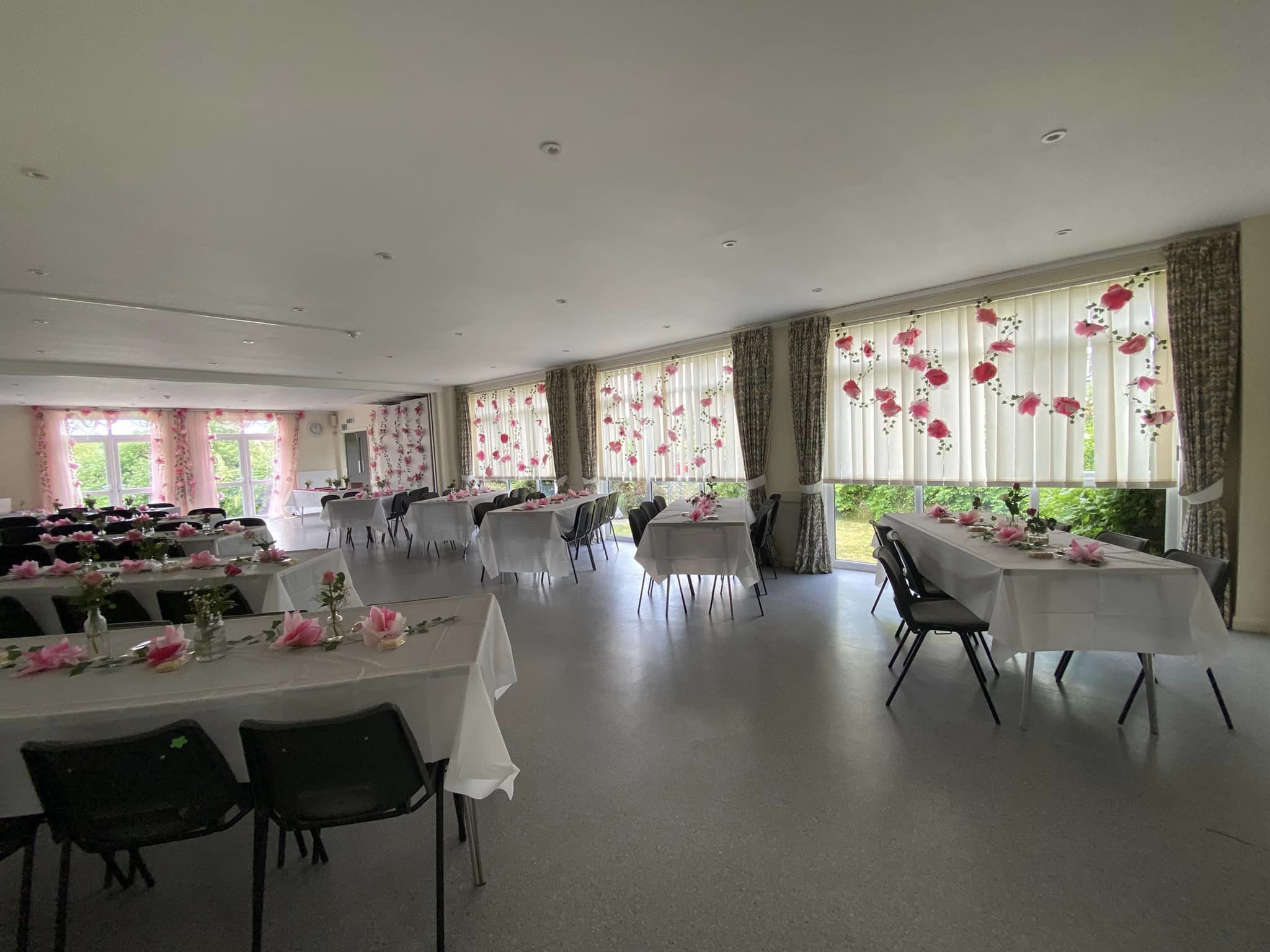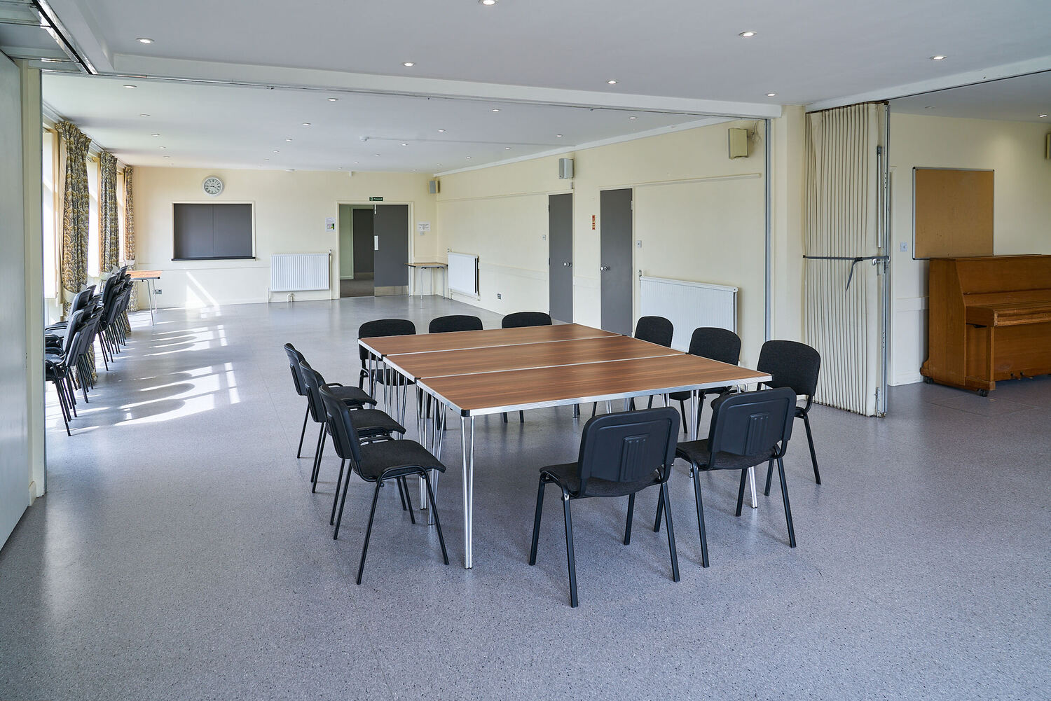 The garden room is our most flexible space and is bright and welcoming. There is a hatch to the adjoining kitchen area for extra ease when providing refreshments, and also French windows out to the garden area which can also be hired separately if required.